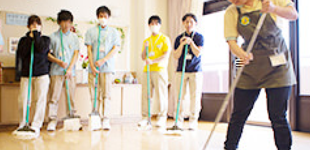 モップや雑巾を使った簡単な実習で基本技術も学んでいただきます。